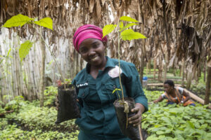 La production de charbon (makala), l’exploitation minière et le défrichement pour l’agriculture sont les principales menaces qui pèsent sur les forêts tropicales humides de Virunga, en particulier la forêt de Mahura. Virunga travaille en collaboration avec les communautés locales pour reboiser les zones où la forêt a été défrichée. Ensemble, la protection et le reboisement contribuent à assurer l’avenir des forêts tropicales humides de Virunga et du réseau d’espèces qui en dépendent.