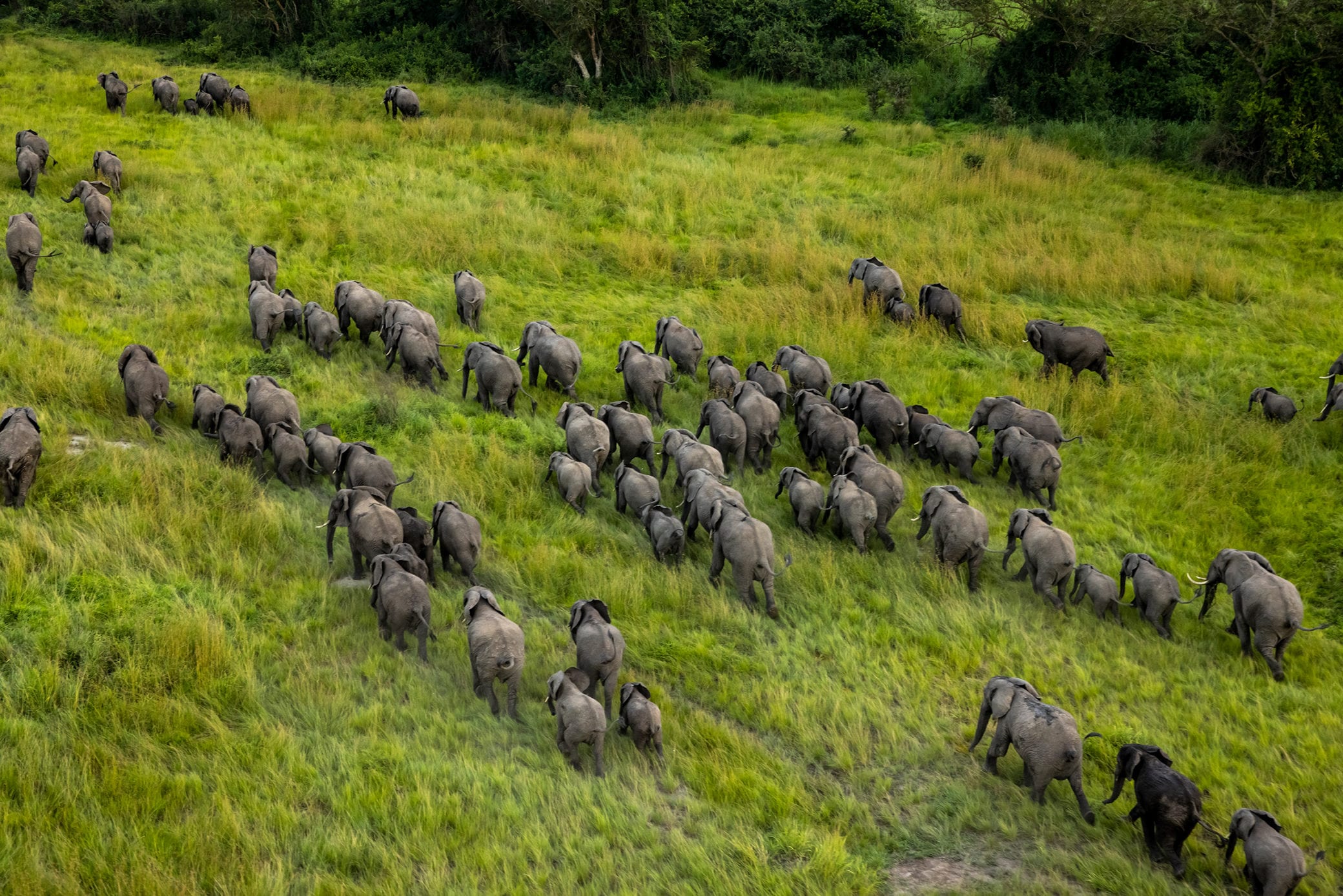 The largest elephant herd—over 500 individuals—since the 1980s was observed in the Ishasha corridor of Virunga, one of Africa's most spectacular protected areas.