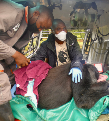 In October 2024, in the lead-up to the reintroduction of four female Grauer’s gorillas, final preparations were made at Mt. Tshiaberimu, including checks on medical supplies and equipment. Team members from Virunga, GRACE, and partner organizations coordinated closely to ensure a safe and smooth transfer. On October 22, the gorillas were successfully transported from GRACE to Mt. Tshiaberimu by helicopter - each accompanied by a veterinary specialist. This marked a major milestone in efforts to restore the local gorilla population.