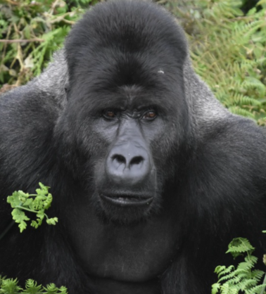 Silverback Mwasa is the current leader of the Kipura family. He became the dominant silverback in 2017 following the death of the previous troop leader, Kambula. Mwasa is short for Mwasananyinya — a name from the Nande local dialect meaning “coming with his mother.” Mwasa’s mother was originally from the Lusenge clan but moved to the Kipura clan while pregnant with Nzanzu, the dominant male of the Lusenge clan. Photo by Gorilla Doctors.