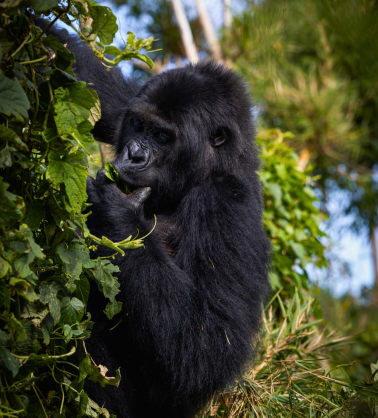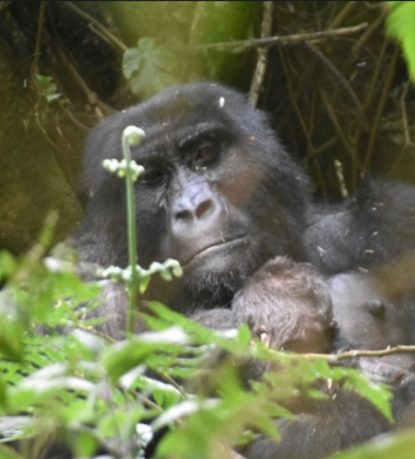 Her name means “there is no peace,” reflecting the period of instability and tension during which she was born in 2012. Originally from the Katsabara family, where she still lives today, Ndekesiri gave birth to a new infant in October 2024, whose sex is yet to be determined — bringing the family size to five. This birth is an encouraging sign for the conservation of this critically endangered species. Photo by Gorilla Doctors.