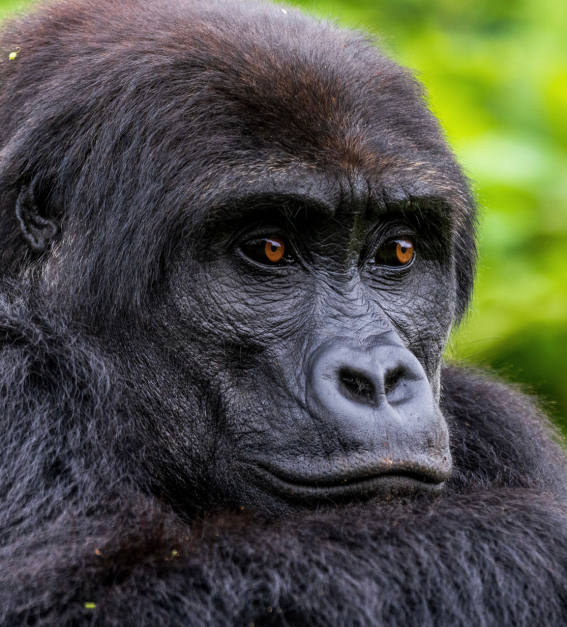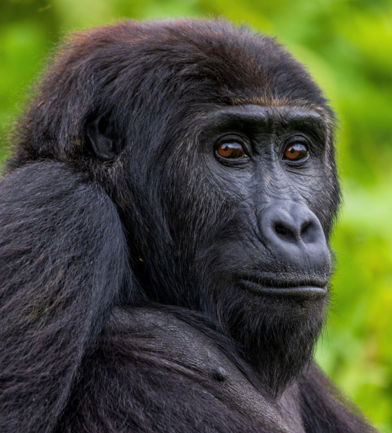 Ndjingala, a 16-year-old eastern lowland gorilla, is pictured here at the GRACE sanctuary. Rescued from the illegal wildlife trade in 2010, she was rehabilitated at GRACE in eastern DRC. In December 2024, she was successfully reintroduced into the wild in Virunga National Park. Photo by Bobby Neptune.